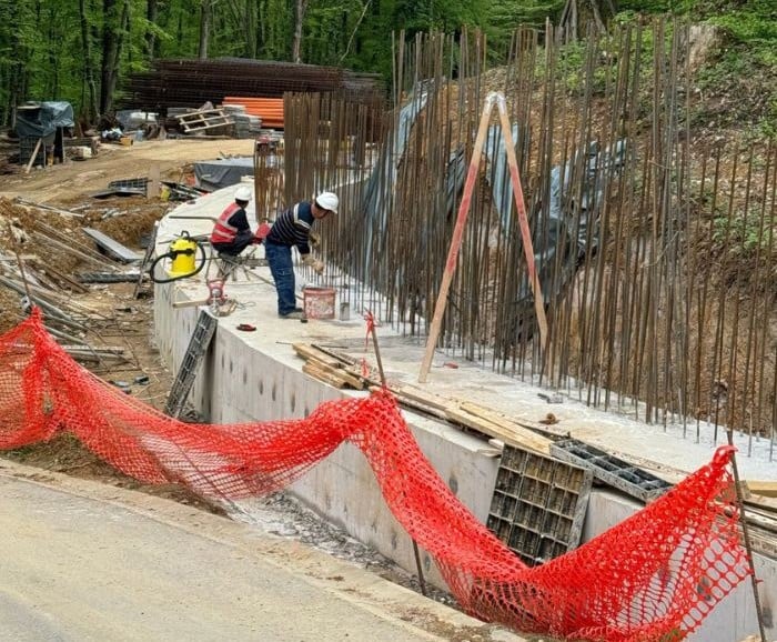 We recently observed some workers building a retaining wall at a construction site. We snapped a photo.
