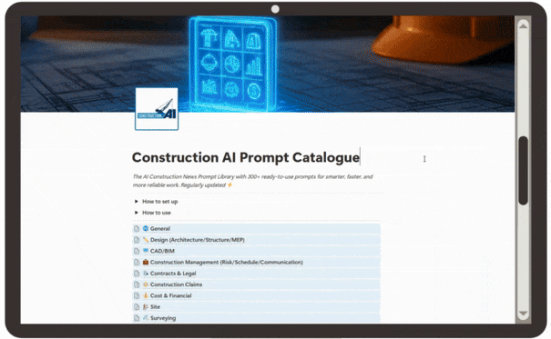 Instead of generic AI commands, you get a structured prompt library aligned with how construction projects actually run. With 300+ prompts across the full project lifecycle, you can support your work from early design through execution, claims, and close-out.